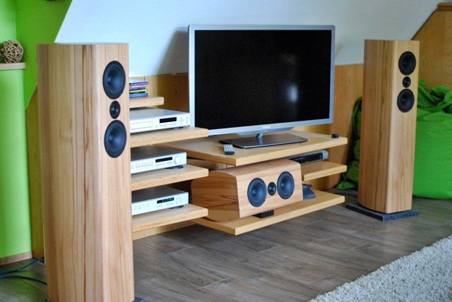 Wir hören hauptsächlich Jazz und Klassik. Das letztere fast nur von der SACD im Multichannel-Modus. Es sollten also fünf möglichst gleichwertige Boxen sein. Vor allem die drei Exemplare vorn sollten möglichst identisch sein. Das ist fürs anständige Musikhören von der SACD ein ganz wichtiger Faktor, wie ich finde. Wieder sollte eine gute Räumlichkeit ins Pflichtenheft, aber eben auch ein unverfärbter, homogener Klang stand jetzt ganz oben auf der Liste. Das letzte Quäntchen Bass müssen die Neuen nicht können. Dafür habe ich mal einen guten Sub gebaut mit geschlossenem Gehäuse und einer hervorragenden Endstufe. Mit ein bisschen Erfahrung kann man den Woofer an jede Box anpassen. Da sind meine Frau und ich schon ein eingespieltes Team. Sie sitzt am Regler, ich vor den Boxen…