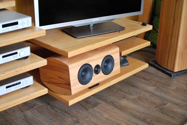 Der Klang entspricht nach einer gewissen Einspielzeit – anfangs ist der Hochtöner noch etwas vorwitzig – genau meinen hochgesteckten Erwartungen. Als erstes fällt einem die absolut runde Vorstellung auf. Das kann ein Breitbänder nicht besser! Vielleicht liegt´s an der d´Appolito-Anordnung bei der SB30. Alles klingt wie aus einem Guß. Die Räumlichkeit ist sehr gut, wobei mir im Vergleich zu anderen Systemen auffällt, dass noch weit vor der Linie zwischen den Boxen etwas passiert und bei entsprechenden Aufnahmen auch rechts und links neben den Gehäusen einiges passiert! Frauenstimmen hört man direkt vor der eigenen Nase – quasi in Spucknähe. Das ist absolut beeindruckend. Meine geliebten SACD´s klingen nun dank der drei baugleichen Boxen in Front unglaublich luftig und homogen. Der Eton ER-Hochtöner kann natürlich oben herum alles noch feiner darstellen. Aber ohne den direkten Vergleich fehlt wirklich nichts! Der Bass ist mehr als erwartet konturiert und geht auch ohne Woofer hörbar tief. Gibt es etwas zu bekritteln? Allenfalls der kleine Platz auf dem Sofa, an dem die Musik richtig einrastet. Daneben klingt es immer noch gut, aber die Räumlichkeit geht ein wenig verloren.