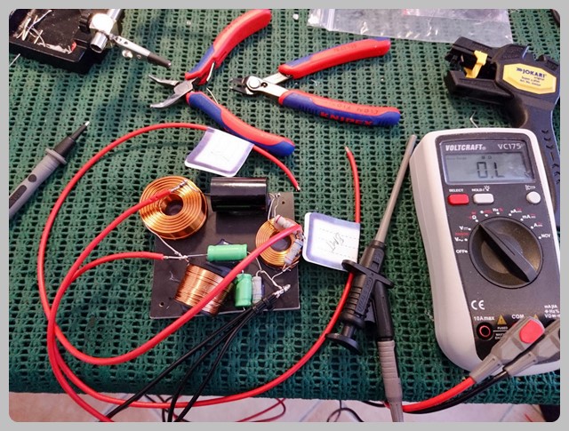 Zum Löten der Frequenzweichen habe ich mir eine Kleinigkeit gegönnt: Eine neue Lötspitze mit 2,0 mm Breite! Nachdem ich mittlerweile 5 Lautsprecherweichen mit der 1,0 mm Version meiner Weller WHS40 zusammengewürgt habe und besonders beim Punkt „alle Minus“ immer ziemlich viel Geduld aufbringen durfte, funktionierte es mit der Neuen viel besser. Im übrigen musste ich mich ein wenig an die neuen Luftspulen gewöhnen. Finde sie mittlerweile aber wirklich schick und das Wichtigste: Keine Wicklung mehr lose. Sehr schön!