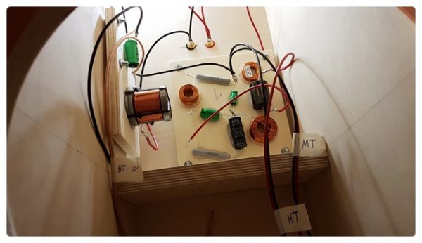 Nach dem tagelangen Streichen und Trocknen konnte ich dann endlich die Chassis verlöten und die Dämmwolle und das ungekürzte Reflexrohr in die Boxen drücken. Dann schnell an den Verstärker gehangen und auf Play gedrückt. Yes, auf beiden Seiten waren Höhen zu hören und alle Membranen waren am wackeln. Erstmal entspannt aufs Sofa gesetzt und ein paar Stücke gehört, hört sich erst mal alles stimmig an. Es war leider schon 23 Uhr durch und ich musste mich mit der Lautstärke zurück halten. Aber man hat schon gemerkt, da geht was!