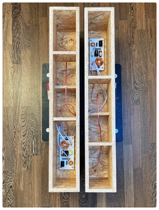 Platinen, noch dazu beschriftete, erscheinen dem fachfremden Selbstbauer durchaus als eine Hilfe, Bestückungs- und Verdrahtungsfehler zu vermeiden. Der Punkt ist, dass “Platine gut, alles gut” leider nicht gilt. Frequenzweichenplatinen sind durch die wärmesaugenden großen Kontaktflächen bzw. breiten Leiterbahnen besonders anfällig für kalte Lötstellen, vor allem mit “Bio-Lötzinn” und Baumarktlötkolben. Außerdem können die Leiterbahnen reißen, wenn der Hobbyist die Platine mit dem Akkuschrauber kraftvoll, aber ungleichmäßig auf die Rückwand in der Box tackert. Verstärkerkurzschlüsse sehe ich nicht so sehr als Risiko von Platinen, das passiert eher bei der fehlerhaften fliegenden Verdrahtung. Den Fehler findet man dann sicher besser bei obenliegendem Drahtverhau, da bin ich ganz bei dir. Ich verdrahte aber weiterhin auf den Rückseiten meiner Brettchen, weil ich nie solche Fehler mache 😉