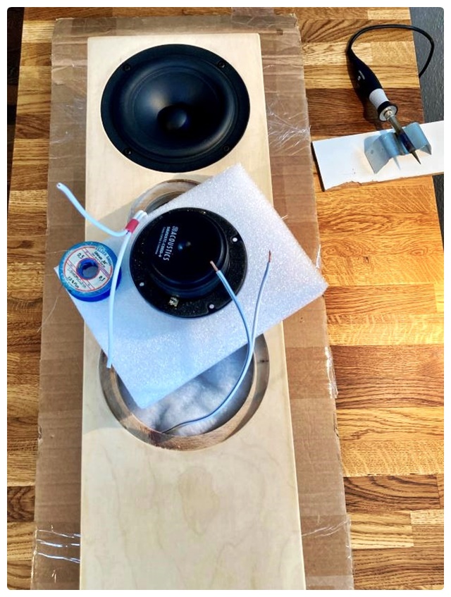 Und auch, wenn man hinterher nochmal was an der Weiche ändern will, den HT ein wenig lauter oder leiser machen z.B., kann man mit den oben genannten Klemmen ohne viel Gefummel rumexperimentieren.