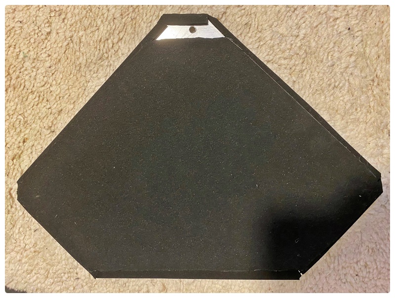 Da die Einlegeböden des Regals eine Tiefe von 24cm haben, lag es nahe die Seiten, 1 cm kürzer, also 23 cm zu machen, weil es einfach schöner aussieht, wenn die Lautsprecher etwas versetzt nach innen stehen. Bei einem gleichschenkligen Dreieck ergibt sich dann aber eine sehr breite Front und die Grundfläche ist trotzdem recht klein. Also im 90 Grad Winkel noch zwei gezeichnete Bretter dran. Sieht schon besser aus! Viel mehr Grundfläche, also auch weniger benötigte Höhe. Die Rückseite wird zwecks Verbau der Anschlussterminals auf 45 Grad angefast. Aus einem Dreieck wird ein … ja was eigentlich? Nennen wir es der Einfachheit halber Diamant. Der aufmerksame Leser wird sofort bemerkt haben, dass ich in Mathematik als Kind eher selten eine 1,0 nach Hause gebracht habe. Also wie nun die Grundfläche bei Multiplex 18mm berechnen? Schnell gegoogelt und einen Online-Rechner gefunden. Perfekt! Die Fläche ist berechnet.