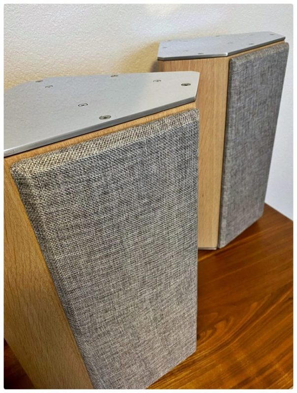Während ich die Abdeckrahmen sägte, fräste, lackierte und mit Stoff bezog, hingen die Boxen auch schon zum Einspielen am Nobsound NS-14G und dem McGee Legend. Übrigens ist der Stoff natürlich kein Möbelbezugstoff, wie es den Anschein haben könnte, sondern sehr dünnes Material aus Leinen. Da gibt es in der Bucht eine sehr nette Händlerin, die „Vintage“ Stoffe für die Lautsprecherbespannung vertreibt.
