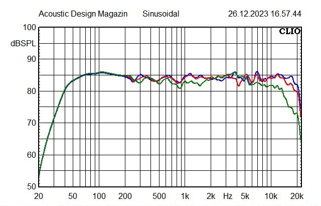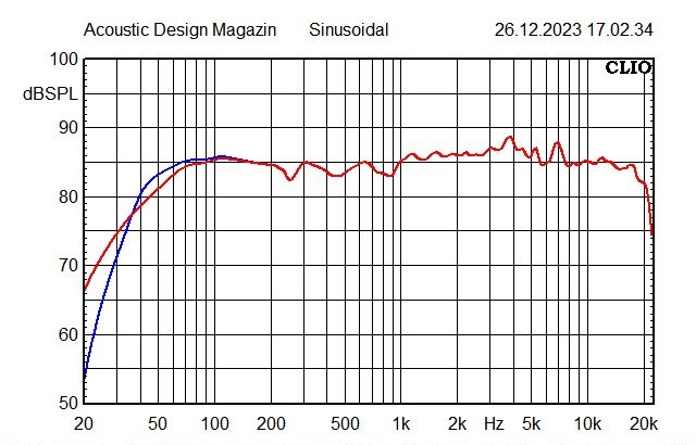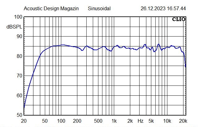 Nachdem ich die Box mit Weiche und ohne „Über alles“-Bearbeitung gemessen hatte, schaltete ich einen Hochpass gegen zu tiefe Anregung. Als man noch Schallplatte hörte, war das nötig, um die Resonanz des Tonarms zu unterdrücken, die unnötig die Membran zu ungesundem Hub zwang. Und was früher einmal gut war, kann heute auch nicht schaden. Zusätzlich gab ich dem Bass einen kleinen Boost, der für die frei stehende AryU_Do 71 sicher hilfreich, aber nicht übertrieben ist.