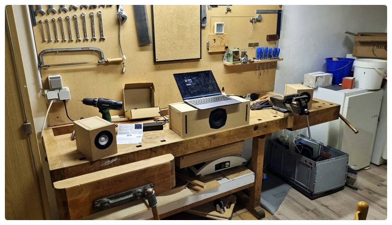 Nach meinen Midus habe ich noch eine kleine Soundbar für meinen Vater und die Mona 21 mit einem Nobsound für mein Gartenhaus gebaut. Dort hör ich meistens mit dem Handy oder Tablet Internet-Radio oder Spotify. Der kleine Sub, in den auch der Verstärker samt Netzteil eingebaut ist, verschwindet unsichtbar in der Ecke unter einer alten Eckbank. Größtes Problem ist die unterschiedliche Qualität und Lautstärke vor allem im Bassbereich der zugespielten Musik. Am Anfang bin ich immer noch in die Ecke gekrabbelt um den Ton anzupassen.