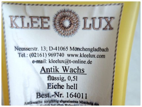 Schleifen 240er bis 320er KornVorgewärmtes Wachs (ca. 35° – 40° C) mit einem Pinsel auftragenetwa 20 – 30 Minuten mindestens WartenMit einer Bürste auf Glanz polieren. Es gibt Sisal-Bürsten-Aufsätze aus Polierschops für die Bohrmaschiene, damit geht es schneller und schont die ArmeIst ein wenig anders in der Bearbeitung als Hartwachöl