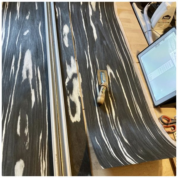 Zwischenzeitlich habe ich das Furnier vorgeschnitten.