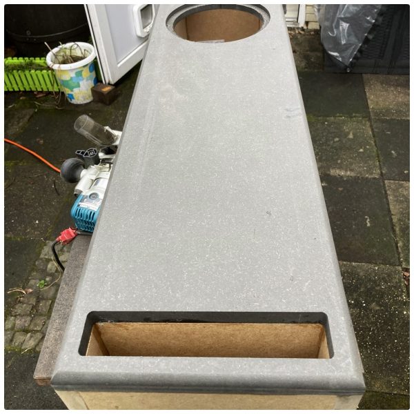 Danach die Endbearbeitung. Mein Endgegner. Zwei Kanten ambitioniert durchgeschliffen. Tränen getrocknet und weiter. Immer weiter. Das Wetter bestimmte weiterhin meinen Arbeitsrhythmus. Am Ende der Qual – die Polierarbeiten. Nach dem großen Regen, oder besser … dazwischen. Aber auch das endete einmal.