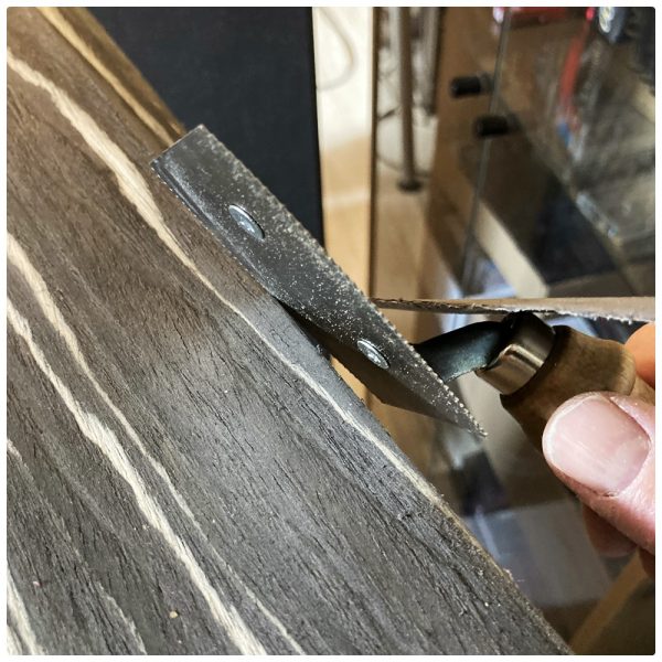 Auch hier die Furniersäge + Dreieckssäge, die ich viel zu enthusiastisch eingesetzt habe. Mehr Schmirgelpapier tat hier Not. Wusste ich eigentlich, aber im Eifer voll verdrängt.