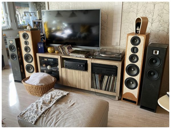Fertig. Probestellen und anschließen. Die Doppel 9er dürfen sich im Wohnzimmer, neben den Vota 4, ein paar Tage, von morgens bis abends, einspielen. Dann kommen sie in die Männerhöhle zum Weitertrainieren, aber mit locker 60 Stunden Spielzeit auf dem Tacho. Bevor die D9er in die Männerhöhle verschwinden und für die meisten Menschen unsichtbar (und unhörbar) werden, können sie sich dort halt ein paar Tage aufplustern. Oder ich mich als stolzer Bauherr.