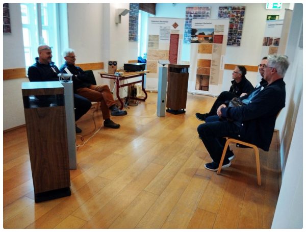 Eigentlich ist es längst rundum eingespielte Tradition, wenn sich die Übernachtungsgäste Freitagsabends zur Einstimmung auf das Event in der „Goldenen Aue“ treffen. Peter sitzt schon am reservierten Tisch und empfängt die weitgereisten Ankömmlinge – Bekannte oder für wenige Minuten noch Unbekannte – herzlich, wie es seine nette Art ist. Katrin lässt sich für heute entschuldigen, sie will sich noch für morgen schonen, wo sie den ganzen Tag tatkräftig unterstützt von ihrer Schwester und Steffi die Besucher mit Speis und Trank bei Laune hält. Peter hat ein Feilchen unter dem linken Auge. „Ach, ich bin im Bad ausgerutscht und hab mir die Nase angebrochen“ Naja, diesmal war es wenigstens keine neue Hüfte oder gar eine Herzoperation am Tag vor dem Treffen, aber dafür war Corona gerade erst seit zehn Tagen überstanden, unter deren Nachwirkungen auch Katrin noch ein wenig litt. Ich frage mich dann jedes Mal, wo die beiden diese bewundernswerte Energie her haben, sich für unsere Belange so ins Zeug zu legen. Einen Plan B hatten sie natürlich vorweg auch schon aufgestellt. Die Zusammenkunft der „Freunde des Lautsprecherbaus“ durfte doch nicht unter ihren Unzulänglichkeiten leiden. Und so sage ich schon zu Beginn des Bericht meinen aufrichtigen Dank an die beiden, ohne deren großartiges Engagement kein Jahres-Event jemals in der Nordhäuser Kreismusikschule stattgefunden hätte.
