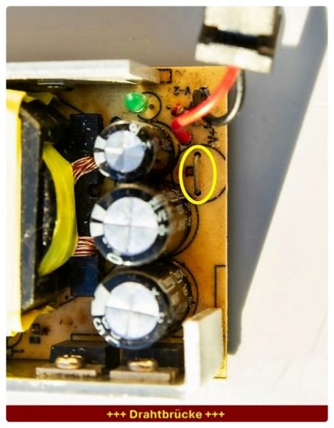 Die nächste Bombe, auf der 24 V Sekundärseite wurde sogar die die Stabkerndrossel durch eine simple Drahtbrücke ersetzt.
