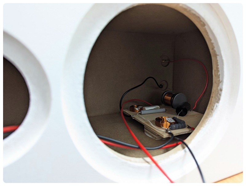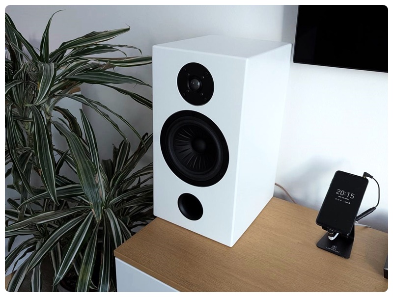 Da stehen sie nun, schneeweiß mit den tollen Chassis als Akzent. Sie wirken leider an dem vorgesehenen Platz etwas wuchtig. Aber auch hier geht man zum Wohle der Liebe halt Kompromisse ein. Die Beiden spielen auf deinem Sideboard in einem fast nicht vorhandenen Stereo-Dreieck ziemlich dicht am Fernseher. Das ist also alles andere als ideal. Dennoch bin ich sehr zufrieden. Alles funktionierte auf Anhieb: kein Klappern, augeglichener Frequenzgang, keine übermäßigen Raummoden … Was will man mehr?