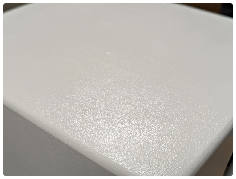 Die Auswahl der Oberfläche war durch die Regierung eigentlich ziemlich festgelegt. Weißer Acryllack, der so matt aussehen sollte, wie es geht. Ich entschied mich für die günstigste Baumarktfarbe und diese hat ihren Job auch gemacht. Hierbei zeigten sich die besagten 40 Minuten-Pausen als erfreulich förderlich. Ich trug über 2 Wochen hinweg jeden Tag eine dünne Schicht mit der Rolle auf. So kam ich auf 10 sehr glatte Schichen, die zusammen ein deckendes Ergebnis lieferten. Ist es ein perfektes Ergebnis? Natürlich nicht! – Aus einem Meter Entfernung zufriedenstellen? Check!