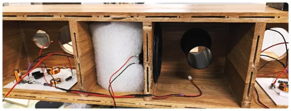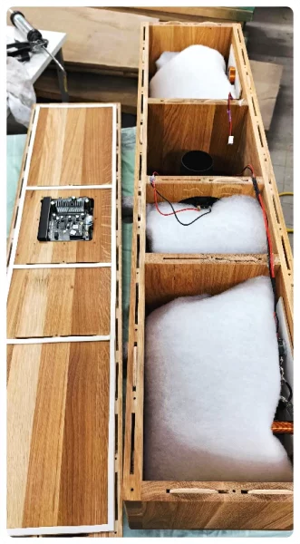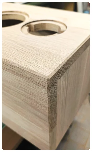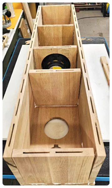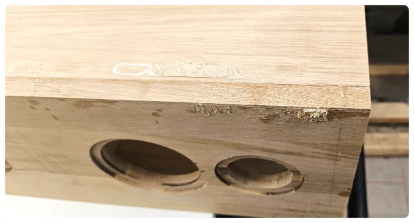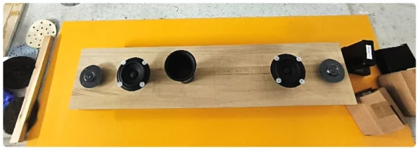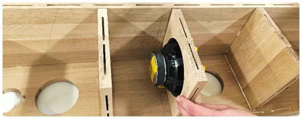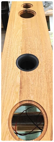 Also das Gleiche mit der Front- und Rückseite. Treiberanordnung festlegen, Bassreflexrohr auf der richtigen Kammerseite optisch platzieren, auf der Rückseite die Lage des Aktivmoduls anzeichnen, alles vorbohren und losfräsen?