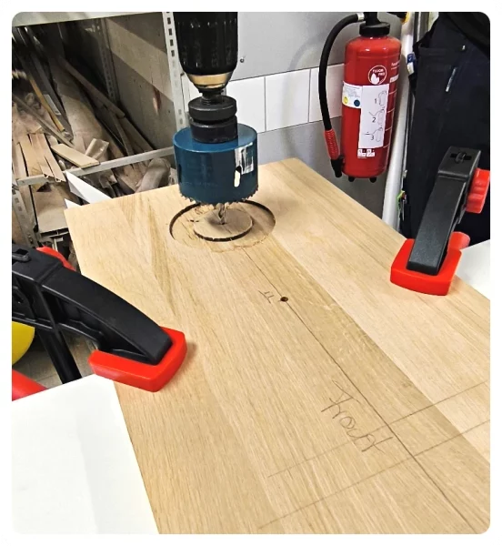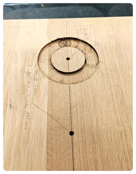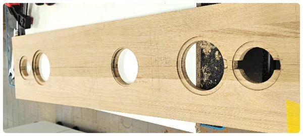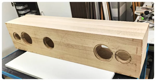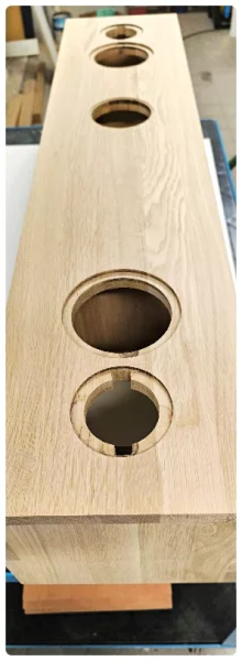 Aber Stopp!, nicht so schnell junger Lehrling… „Bevor hier was verleimt wird, wat hältste denn vom Fräsen der Öffnungen für die Treiber? Oder willste die ganze Kiste drehen? Außerdem wat is denn, wenn was schief geht? Alles Brennholz oder wat?“ mmmh, erstens wunderbarer Berliner Slang und zweitens berechtigte Fragen… 😊 Natürlich!