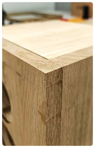 Zu Deiner Anmerkung, ohne Rahmen wäre Vollgehrung ein Muss gewesen. Durch den geplanten Rahmen ging es eben auch stumpf.