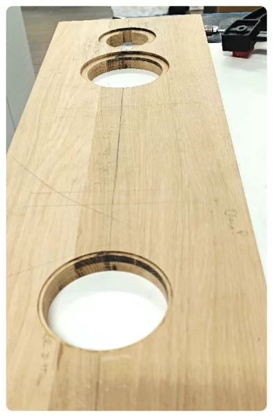 Aber Stopp!, nicht so schnell junger Lehrling… „Bevor hier was verleimt wird, wat hältste denn vom Fräsen der Öffnungen für die Treiber? Oder willste die ganze Kiste drehen? Außerdem wat is denn, wenn was schief geht? Alles Brennholz oder wat?“ mmmh, erstens wunderbarer Berliner Slang und zweitens berechtigte Fragen… 😊 Natürlich!