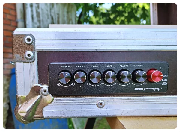 Zum Testhören gab es zuerst diverse Titel von Spotify per Bluetooth vom Handy. Läuft auf Anhieb, schneller Verbindungsaufbau. Am Amp hatte ich zum Start alle Regler auf Mittelstellung. Aus allen Lautsprechern kamen die richtigen Töne, aber es klang noch ziemlich „unrund“. Nachdem die Höhen etwas gedrosselt, die Trennfrequenz gesenkt und die Basslautstärke erhöht war, passte es. Eines meiner Lieblingsstücke (Slow Dance von Ana Popovic) war einzige Quelle für die Grundeinstellung. Der Testlauf war im Freien und ich habe es so eingeregelt, dass bei diesem Stück und voller Lautstärke am Handy gerade noch nichts verzerrt oder Membranen anschlagen.