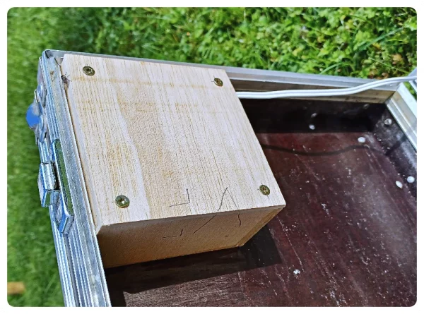 Um den „Deckel“ der Gehäuse befestigen zu können, habe ich Leisten in die Ecken geleimt. Die geben den Schrauben mehr Halt als das dünne Sperrholz. Die Bohrungen in den Deckeln habe ich Pi x Daumen gesetzt, was das Markieren der Einbaulage erforderlich machte.