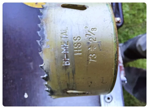 Die Breitbänder sollten in den Deckel. Damit habe ich mal angefangen. Zufällig war in meinem Fundus eine passende Lochsäge für die Einbauöffnung.