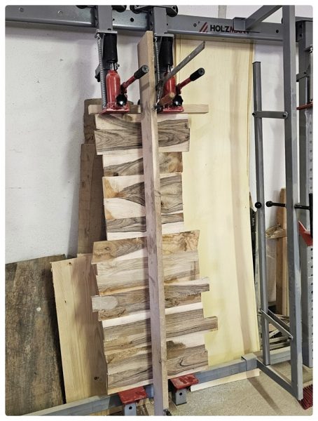 Nach dem Grobzuschnitt und Hobeln ging es natürlich direkt zum Verleimen.