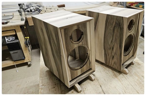 Es gibt gute Gründe, Boxen nicht aus Vollholz zu bauen, sondern aus Span- oder Schichtwerkstoffen, dann gerne auch mit Holzverblendung oder Echtholzfurnier.