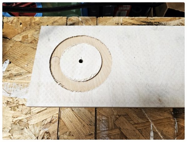 Daher bin ich am nächsten Tag nochmal zum Baumarkt gefahren, habe die Platten reklamiert und umgehend neue gerade Stücke erhalten. Dann konnte es am Abend schon losgehen. Die Ausschnitte waren mit der Oberfräse und dem Fräszirkel sehr schnell gemacht und das Verleimen auch keine große Sache. Mittlerweile hatte ich auch ein wenig Übung.