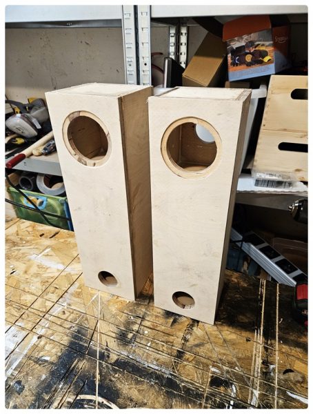 Beim Bauen der Lautsprecher ist mir aber immer die unfertige Werkstatt ein Dorn im Auge gewesen und ich musste mich dem Thema wieder etwas mehr widmen und meiner Frau sind auch noch ein paar Bauprojekte eingefallen… Nachdem zwei fertige SB15 Rear LS in der Werkstatt eingespielt wurden, wollte ich aus unerklärlichen Gründen nicht mehr zurück auf meinen BT-Lautsprecher. Und so habe ich spontan beschlossen, bei der letzten SB15 Bestellung die Mini ACL mitzubestellen.