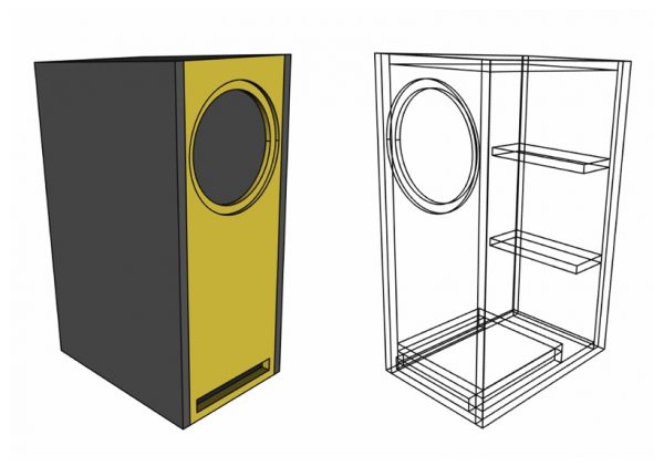 Für zwei MW 16-8 in getrennten Kammern, die den AT60NC in ihre Mitte nehmen, reichen bei gleicher Breite und Tiefe 49 cm Höhe aus. Obwohl er es nicht braucht, darf dabei auch der AMT ein Eigenheim mit gut 7 cm Höhe bewohnen.