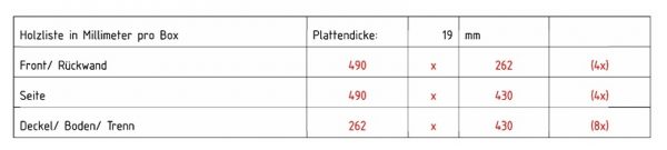 Um die vorhandenen Platte maximal effizient zuzuschneiden, habe ich die Maße in CutMicro eingegeben und schnell war klar, dass mein Vorrat nur ausreichte, wenn ich für die Seiten anderes Material nehme.