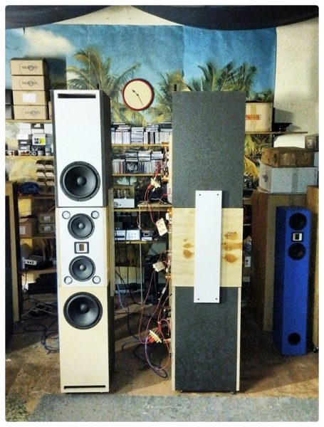 Manchmal gehst du abends schlafen und wachst am nächsten Morgen mit einer Idee auf, die dich nicht mehr loslässt. So ging es mir mal wieder, als ich vermehrt nach den im Laden vorführbaren Bausätzen aus der BelAir-Reihe gefragt wurde. “Ich würde gern die Lady mit der GrandLady vergleichen, interessant wär dazu die Little Lady geschlossen oder Bassreflex als Center und die geschlossene BelAir 71 als Rear. Am besten natürlich alles in passiv und aktiv.” Klar doch! Da stell ich mir 10 Boxenpaare in den Laden, alle komplett bestückt mit Weichen oder Aktiv-Modulen, dazu selbstverständlich noch die anderen Vorführboxen und das Sofa. Dann hat nicht einmal mehr mein Kater Platz im Laden und die Besucher müssen draußen durch die offene Tür ihre Hörtests verrichten! Vollkommen sinnlos, denk ich gar nicht weiter drüber nach!