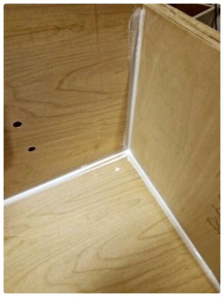 Ich hatte doch glatt ein Brett verbaut, was dummerweise die gleiche Breite wie die anderen Bretter hatte – aber es war um einiges zu lang/tief, so dass es relativ weit in die Box führte. „Was tun?“, war die große Frage. Herausnehmen aus der Kiste ging nicht mehr. Das Brett, so lang wie es war, einfach drin zu lassen, traute ich mich nicht. Also griff ich zum Telefon und fragte Udo, was ich in dieser misslichen Lage tun könne. Er riet mir, dass Brett zu kürzen, da es bei der jetzigen Länge den Bass wegen viel zu tiefer Reflex-Abstimmung zu dünn klingen lässt, meinte er.