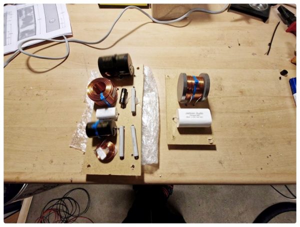 Mitte Dezember wurden die Pakete geliefert. Ein Blick auf den Inhalt offenbarte mir: Jetzt kannst du dein Lötdiplom machen, denn die Weichen waren nicht aufgebaut, sondern es lagen eine Vielzahl von Widerständen, Spulen etc. in dem Paket. Au weia, dachte ich. Auch das noch. Udo bot mir an, die Weichen doch noch aufzubauen – doch ich lehnte dankend ab. Jetzt hatte mich der Ehrgeiz gepackt!