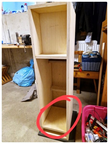 Als ich dann die erste Box bis auf die Schallwand fertig hatte, legte ich schon mal die Bretter für die zweite Box zurecht. Doch was war das?! Ich hielt 2 Bretter in der Hand, die eigentlich über den Bassreflexschlitz positioniert werden. Das konnte doch nicht sein. Ich sollte doch nur noch ein Brett übrig haben. Was hatte ich denn da bloß eingeleimt?