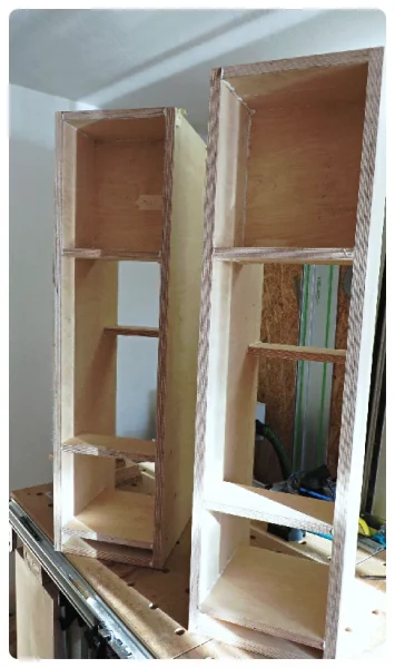 Also Nachkauf planen. Samstag Nachmittag 16:30 Uhr. Leider weiß ich, dass der örtliche Baumarkt von Birke auf Eukalyptus umgestellt hat. Damit hatte ich noch nie gearbeitet und es scheint leichter als Birke zu sein. Beides keine guten Voraussetzungen, dem meine ersten Lautsprecher anzuvertrauen. Also genug Baumärkte in der Umgebung gesucht. Im Nachbarort ist die Auswahl größer. Hier lag meine Hoffnung. Angekommen festgestellt, dass die im Winter schon um 17 Uhr schließen und es war 16:58. Na toll. Der nächste hatte auch wieder nur Eukalyptus. Der dritte war dann ein Obi. Der hatte zwar 21er Birke, aber keinen mehr am Zuschnitt. Erst wieder Montag ab 12.