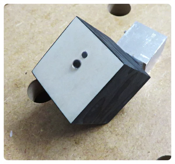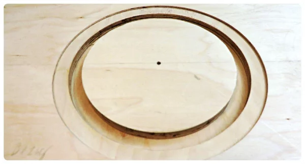 Für den Mitteltönerausschnitt musste ich mir nochmal einen kleinen Fräszirkel basteln. Der ist sehr primitiv geworden, aber funktioniert bestens dafür.
