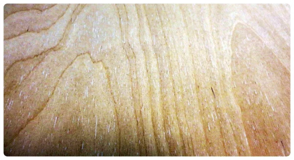Was ein bisschen wie Leimdurchschlag aussieht, ist tatsächlich ein Farbunterschied im rohen Furnier. Als ich es das erste Mal gesehen hatte, habe ich erstmal schon Angst bekommen, dass meine Oberfläche später ungleichmäßig wird. Aber dann konnte ich den Schimmer auch auf einem rohen Stück Furnier finden und war beruhigt.