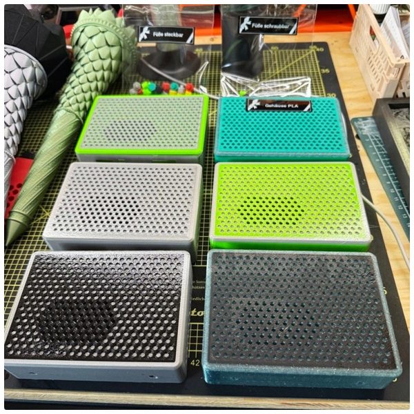 Vorsicht beim Anschrauben der Füße: Nach Fest kommt Ab. Wenn die Schraube zu fest angezogen wird, gibt das PETG nach und der Fuß ist wieder lose. Korrektur ist entweder neuen Fuß drucken oder den Fuß ankleben