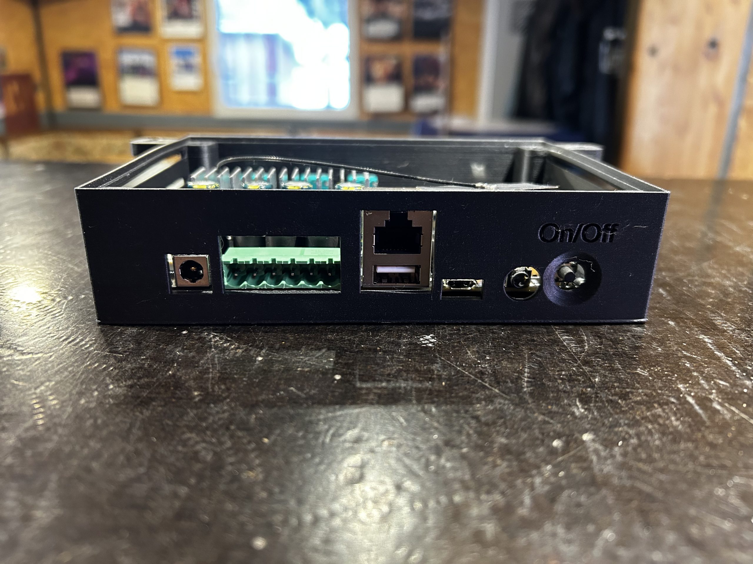 Im Zuge eines kleines Zwischendurch-Projekts hat Udo mir für unseren Treffpunkt im Freundekreis ein Rockset Maxissima geschneidert, das wie die kleineren Sets mit dem Arylic Up2Stream Amp betrieben wird. Simple umgesetzt: Kisten aus OSB 22 zusammengeleimt, mit Warnex Strukturlack gewalzt und abschließend mit einer 3D-gedruckte Schablone das Logo mit einer weißen Spühdose lackiert. Da mir das „Gehäuse“ des Verstärkers mit den zwei Acrylplatten nicht gefallen hat, bzw. der Verstärker geschützt von unten an eine Bar geschraubt werden sollte (deswegen auch die Tropfkante beim einen Model über den Reglern) hab ich den 3D-Drucker angeschmissen und mir eins gedruckt.