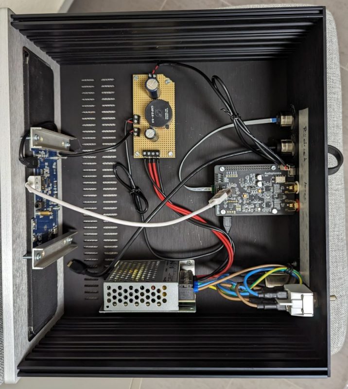 Die DAC Platine kommt von hier https://www.audiophonics.fr/en/dac-and-interface-modules/audiophonics-dac-i-sabre-es9038q2m-raspberry-pi-i2s-spdif-pcm-dsd-usb-c-power-supply-p-12795.html (beachtenserte Messwerte siehe ASR Link in der Artikelbeschreibung).