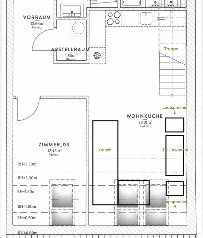 Nun zum eigentlich Anliegen. Mein Wohnzimmer ist (für die Akustik) etwas ungünstig geschnitten, weswegen ich eure Meinung hören wollte: