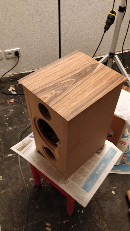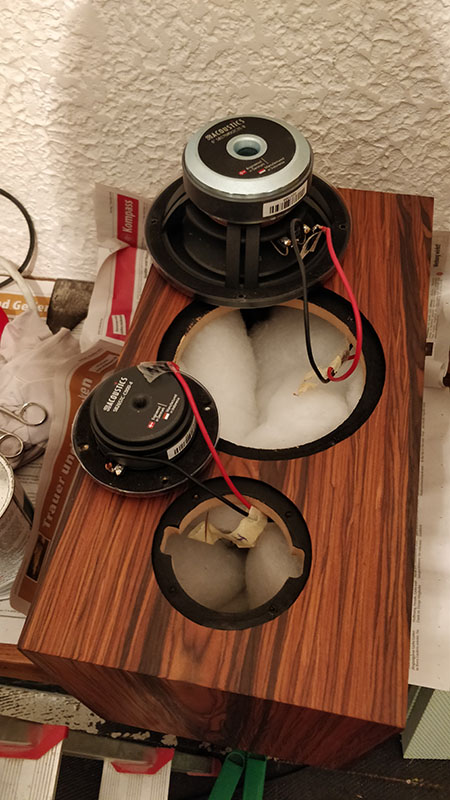 Von den fertigen-unfertigen Boxen hab ich leider kein Bild, aber sie klangen! Allerdings hatte ich keine Zeit mehr, nur ein kurzer Test war moeglich.