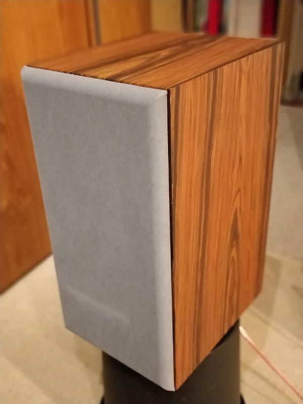 Fast forward 5,5 Monate, Weichnachten steht vor der Tuer und ich bin noch jugn genug, dass ich zu meinen Eltern fahre. Ich hatte mir im Vorfeld schon das Furnier bestellt, das auf die Boxen sollte. Ich hab das gleiche Saraifo Zeugs gewaehlt, dass schon auf dem Raspi-Player war. Also vor Weihnachten dann Chassis wieder ausgebaut und abgeloetet, Kanten/Ueberstanede eben geschliffen, Furniert mit der Buegelmethode (hier war ich etwas skeptisch, beim Player hab ich mir Zwingen gearbeitet, aber mit Standard Ponal funktioniert Buegels astrein, wirklich genial diese Methode).