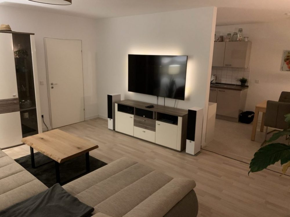 Den Center auf das Sideboard zu stellen ist aus optischen Gründen leider keine Option. Die Kabel von dem TV sind aktuell auch nicht mehr sichtbar. Auf dem Bild ist der neue TV mit zu kurzen HDMI Kabeln zu sehen, habe sie jetzt alle sauber in einem Kabelkanal. Und ja, normalerweise steht da Deko … 🙂