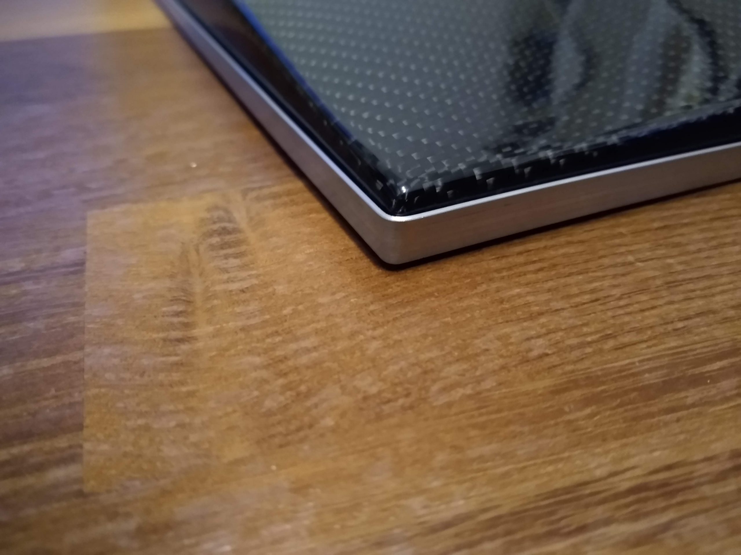 Die Front ist übrigens carbontypisch dünn. Sie bildet aber nur eine Blende und dahinter sitzt eine „klassische“ MDF Front, sodass die „Dichtheit“ und die „Steifigkeit“ gewährleistet ist.