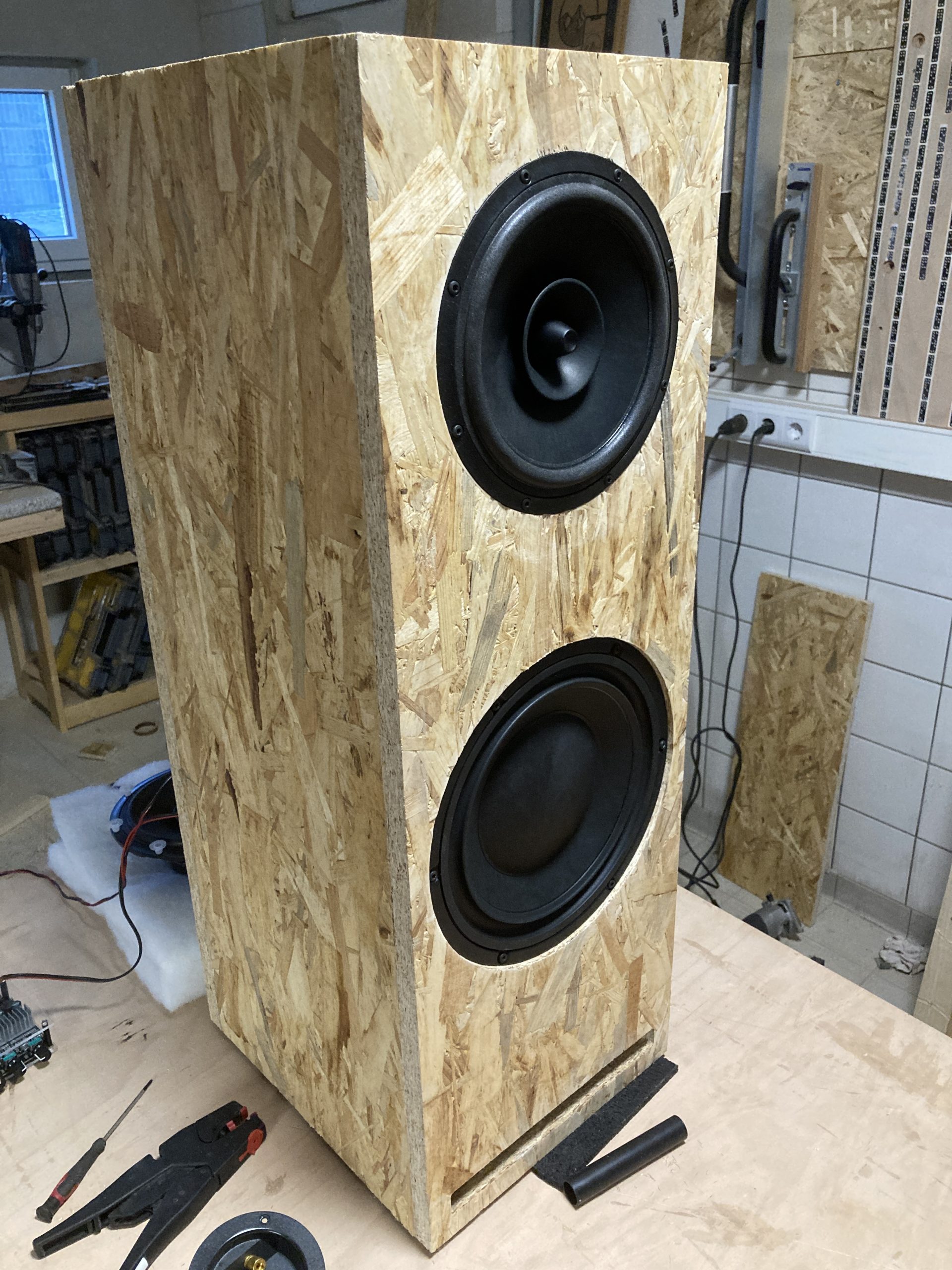 Voller Vorfreude habe ich den 1. Lautsprecher getestet. Klanglich war er schon gut, der Bass wollte leider noch nicht recht klingen. Ursache unklar