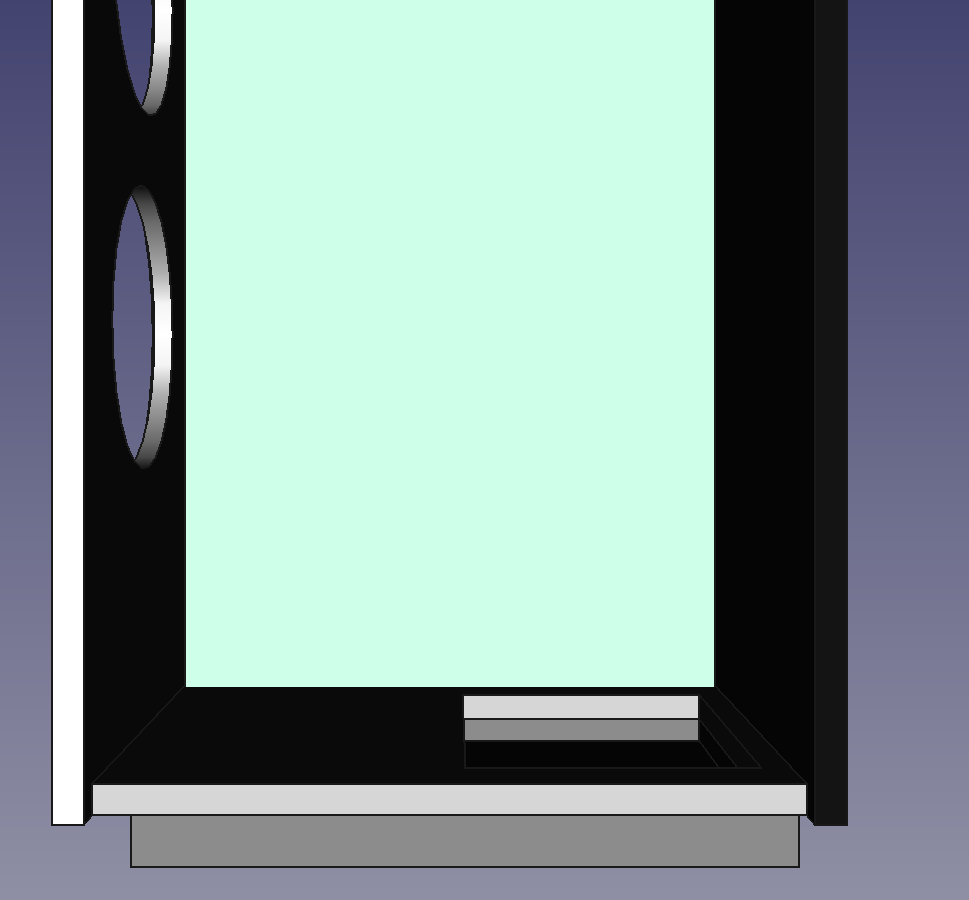 Mein Gedanke dahinter war, um bei annähernd 100L Nettovolumen (für die Bässe)zu bleiben und trotzdem irgendwie mit der Höhe ein wenig runterzukommen, den SB 17 und den Hochtöner zu tauschen, dafür aber weiter runter mit den Bass-Chassis zu gehen. Zudem dann noch ein Bassreflexschlitz…