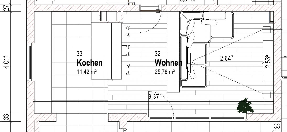 Ich habe eine Skizze angehängt. Es ist ein Wohnzimmer mit 4×4 Meter „Hörzone“. Der Raum ist jedoch nach hinten offen (Küche) und ist im gesamten 4×9,3m groß. Auf 4 Seiten Massivwände, auf einer Seite jedoch eine große Fensterfront.– Welches Setup ist gewünscht? (Stereo / Heimkino X.2 / Heimkinooption gewünscht?)
